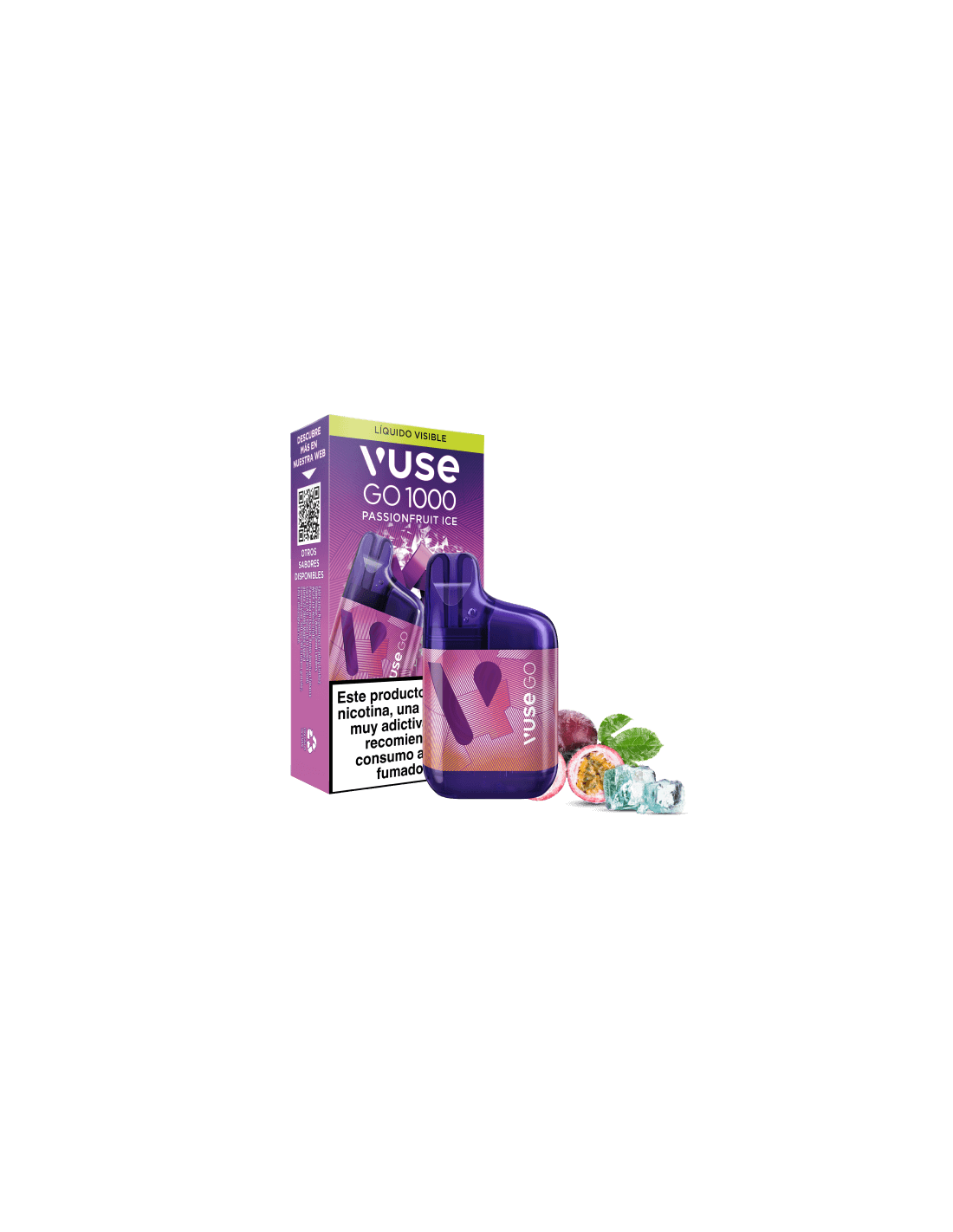 El pod Desechable Passion Fruit Ice GO 1000 Box by Vuse con el que experimentarás delicioso sabor super dulce de la fruta de la pasión, un desechable tan jugoso y delicioso que te deleitará el paladar, ideal para los que están buscando disfrutar del vapeo sin tener que renunciar a la nicotina.