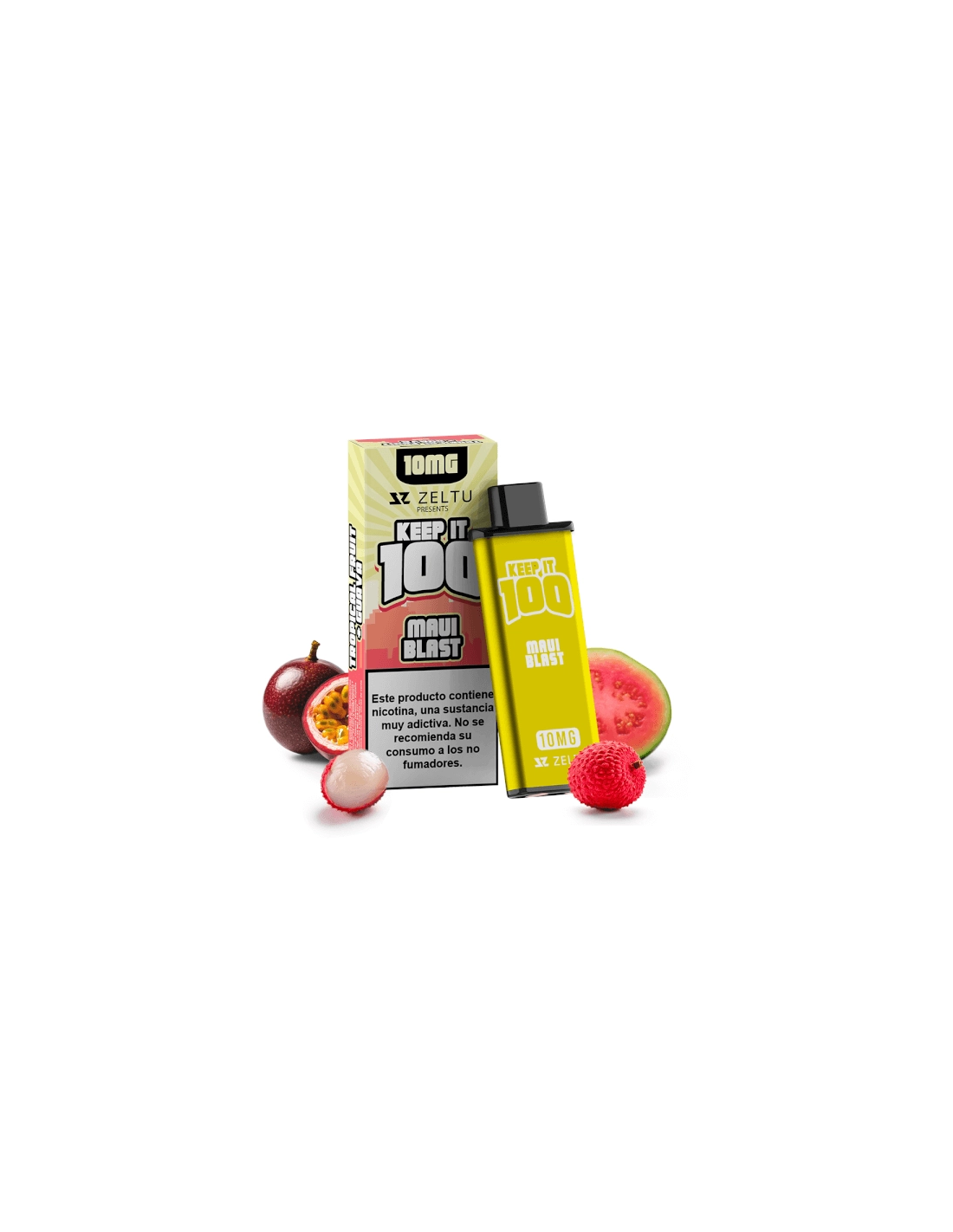 Pod Keep it 100 Maui Blast - Zeltu X3 Prefilled es una mezcla de lichi, guayaba y maracuyá.